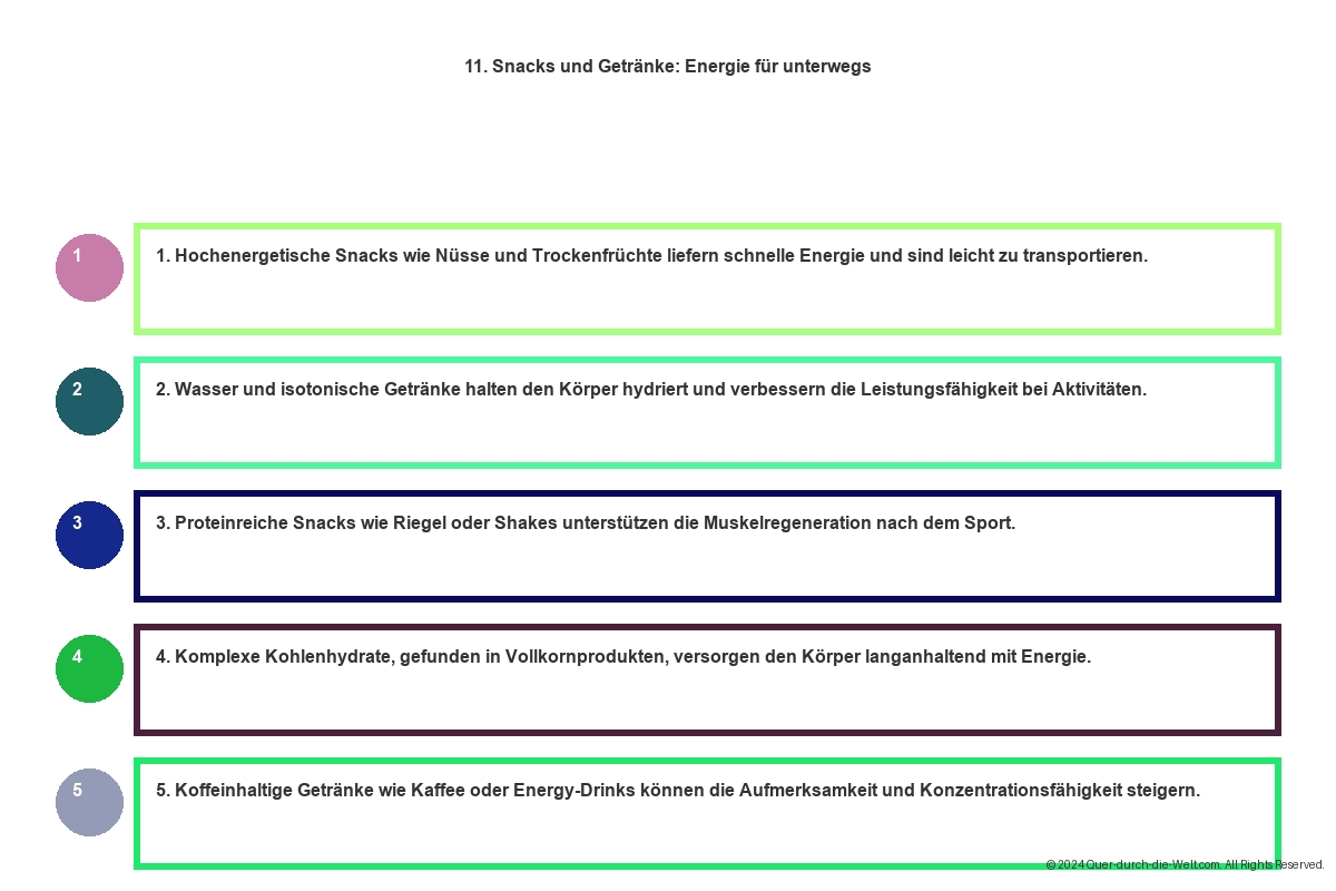 - Snacks und Getränke für unterwegs: Energie für Ihre Entdeckungen.