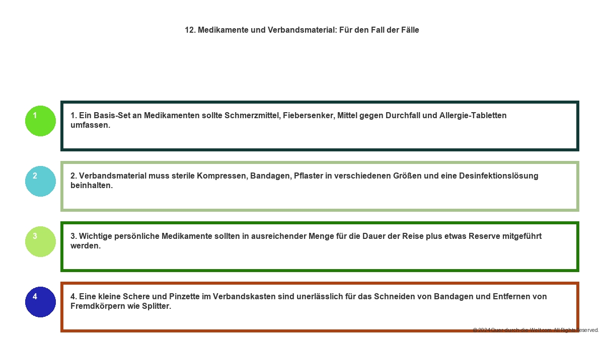 - 6. Sollte ich Medikamente oder Verbandsmaterial mitnehmen?