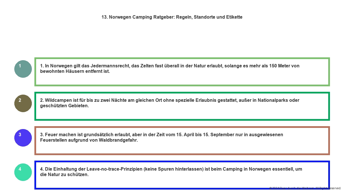 Denk daran: In Norwegen ist das Jedermannsrecht gültig, was bedeutet, dass du fast überall in der Natur campen darfst. Nutze diese Freiheit verantwortungsvoll und hinterlasse keinen Müll. Erfahre mehr über das Camping in Norwegen und wie du deine Spuren minimal hältst.